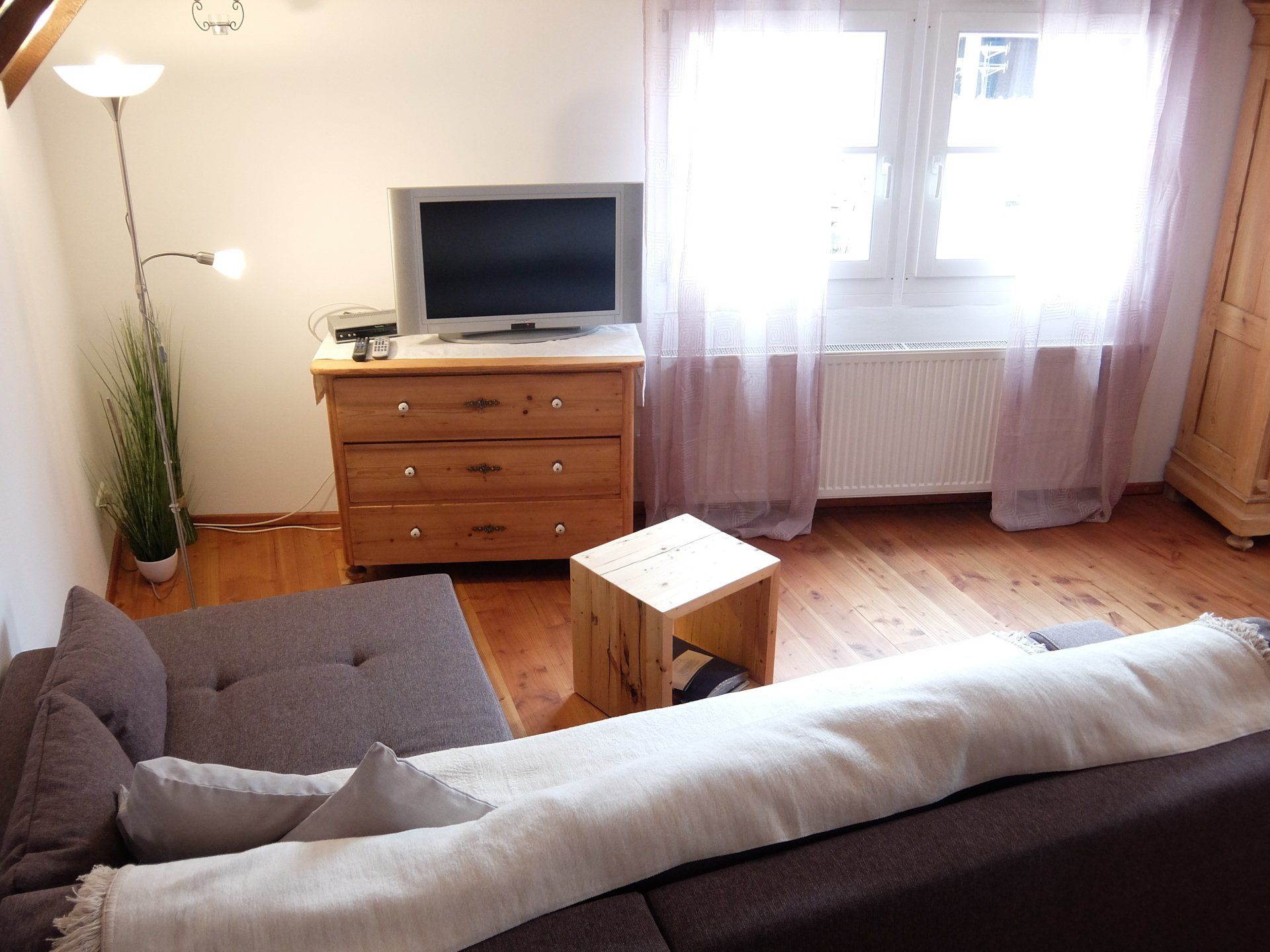 Auf der gemütlichen Schlafcouch kann man zudem Platz nehmen und entspannen. Außerdem stehen Sat-TV, Dusche und WC zur Verfügung. Auf Wunsch kann die Gäste-Küche mitgenutzt werden oder als kleines Appartement gebucht werden.